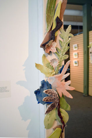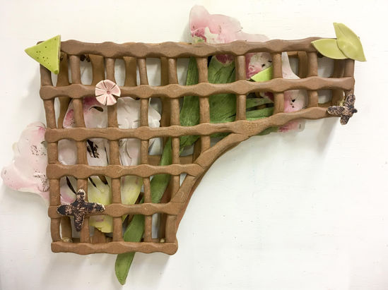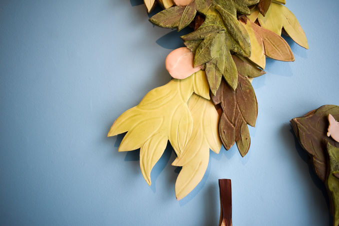 Please consider the ceramic material’s connection to land and commemoration when viewing this work. Clay is the most long lasting archival material we use. Will the plants represented here take over or will these small layered, abstracted personal expressions be the souvenir of a perished plant? Fairbank proposes a compromise: coexistence by attentive interaction. Rather than translating the specific these tiles are meant to be plant-like, expressive, personal and joyful, a reminder that we are not apart from, but a part of nature. A reminder that growth is possible.